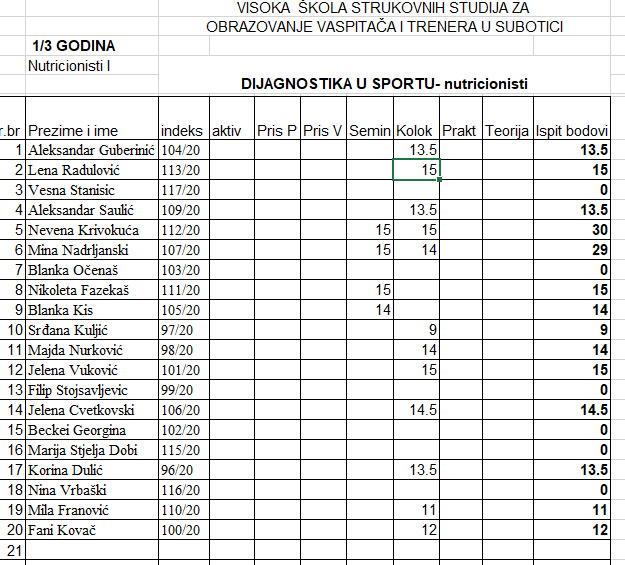 РЕЗУЛТАТИ КОЛОКВИЈУМА СУ У ПРИЛОГУ.